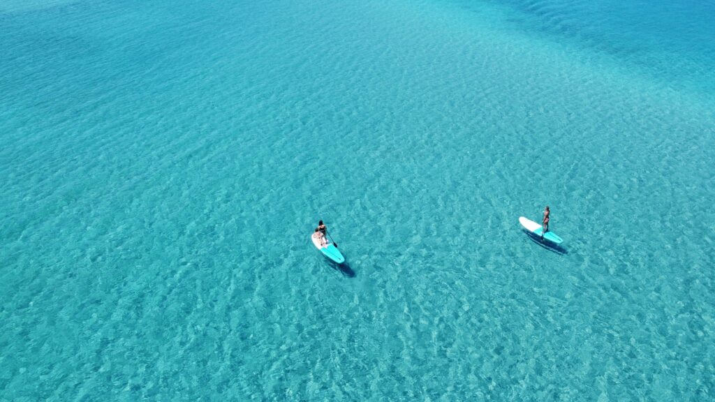 SUPの魅力は、立った状態で水面を進むことで視界が広がり、景色を一望できる点です。座って漕ぐカヌーやカヤックとは違い、高い目線から海や川の美しさを楽しめます。
