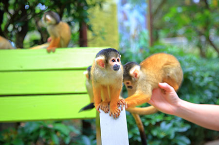 えさやりをしなくても、リスザルの森に入るだけで十分楽しめます。